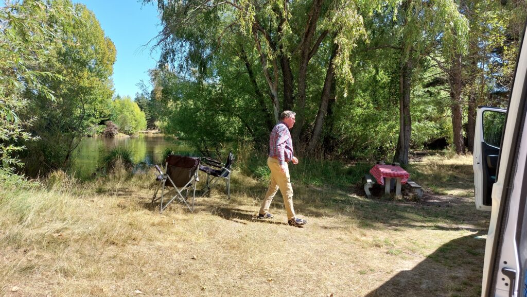 Na Twizel rijden we door naar een prachtig gelegen freedom camping aan Lake Wardel. Tip van Marty en Julie, de andere kampeerders op de Farmstee. Zij hadden hier ook een paar dagen gestaan. Je staat heerlijk tussen de bomen in de halfschaduw aan een mini meertje waar het ruikt naar dennen. We staan al om 2 uur op de camping en hebben een rustige middag om te lezen. Het is tenslotte vakantie.