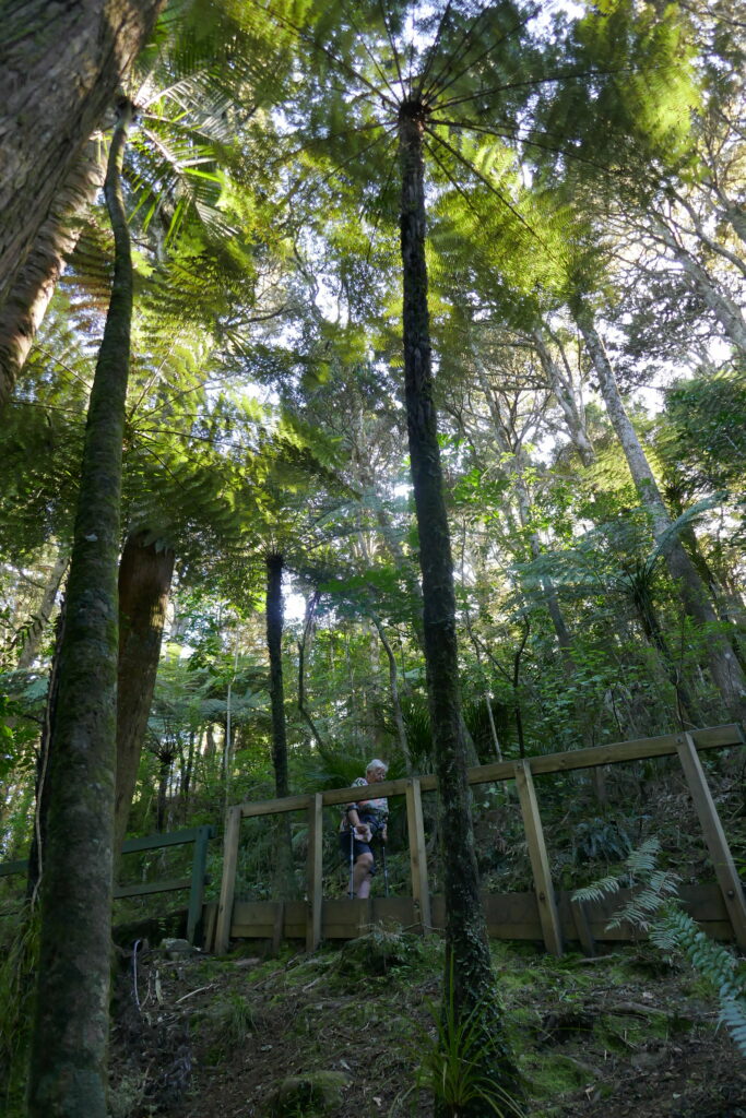 Bij de waterval moeten we natuurlijk de 26 meter weer omhoog klimmen, maar dat gaat via deze kant van de rivier via een zigzag pad zonder trappen omhoog. Dat is een stuk eenvoudiger. Details van onze wandeling van 4,7 km met een hoogteverschil van 113 meter: Whangarei falls.